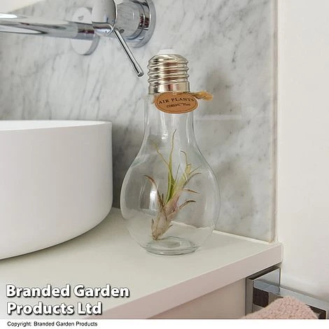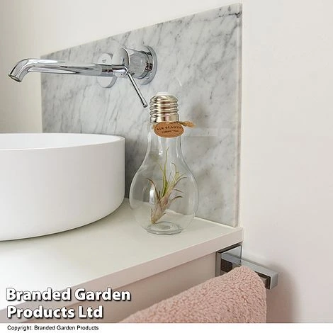This adorable mini Tillandsia in a light bulb, makes a unique and characterful addition to the home. These hygienic and air-purifying airplants require no soil, making them mess-free and easy to maintain. A lovely bathroom accessory!