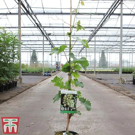 A versatile white grape which can be eaten fresh or used in wine and juice production. Grape ‘Muscat of Alexandria’ bears beautiful long bunches of white grapes in late September, with aromatic yellow-green skins and a superb, sweet flavour. This self fertile variety will produce the best results if grown under cover and may benefit from hand pollination – but the results are well worth the effort! Height of cordon trained vine: 1.8m (6′). Spread of cordon trained vine: 1.5m (5′). Untrained plants may reach up to 8m (26′).