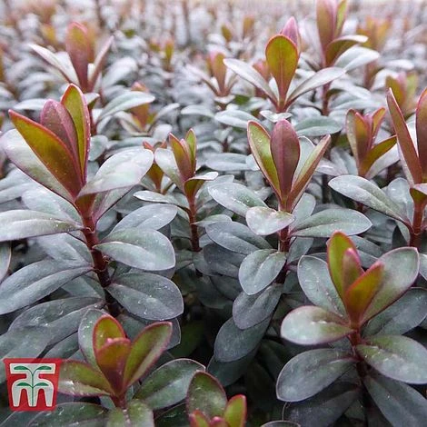 Hebe ‘Bronze Glow’ provides superb value in the garden. The lilac flowers are borne in profusion in early summer, with a second flush in autumn. But it’s the dark green foliage that makes this evergreen shrub really stand out. As winter approaches, the leaves turn an eye-catching bronze colour that persists through to spring. This compact shrub makes a colourful addition to sunny borders and wildlife gardens, providing a rich source of nectar for pollinating insects. Height: 50cm (20″). Spread: 60cm (24″).