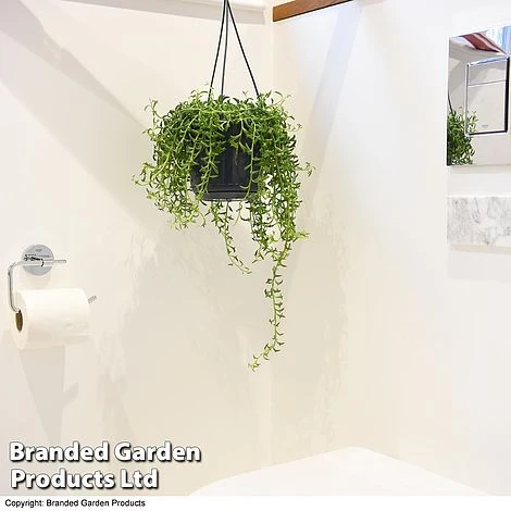 An unusual alternative to ‘String of Pearls’ or ‘String of Hearts’, ‘String of Dolphins’ is an adorable succulent whose trailing stems are strung with fleshy green leaves that look just like tiny leaping dolphins! Look out for white cinnamon-scented flowers in autumn. The trailing habit of Senecio peregrinus means it looks fantastic cascading from a hanging pot. Supplied in a 15cm hanging pot ready to hang in a bright corner for a charming addition to your home! Height: up to 80cm (31in). Spread: 15cm (6in).