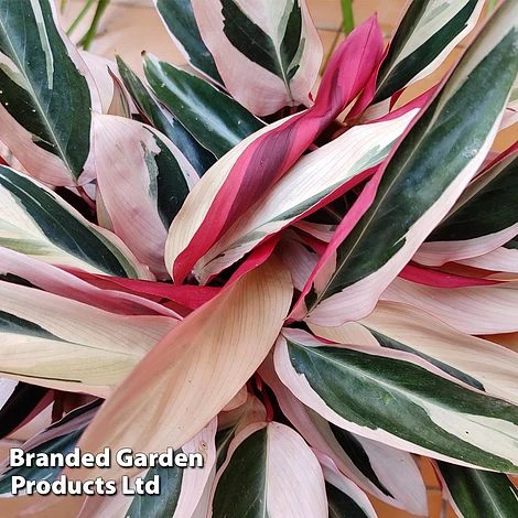 Sure to become the centre of attention in any room, Stromanthe sanguinea ‘Triostar’ boasts exquisitely foliage. Each green leaf is liberally patterned with cream or pale pink, with a striking hot pink underside. New leaves emerge tightly furled, showing off their pink colouring to perfection. Like other prayer plants such as Calathea, the leaves of Stromanthe ‘Triostar’ fold upwards at night. This stunning variegated houseplant thrives in a bright spot out of direct sunlight and makes a beautiful gift for a pink-lover – or simply to treat yourself! Height: 90cm (36in). Spread: 60cm (24in).